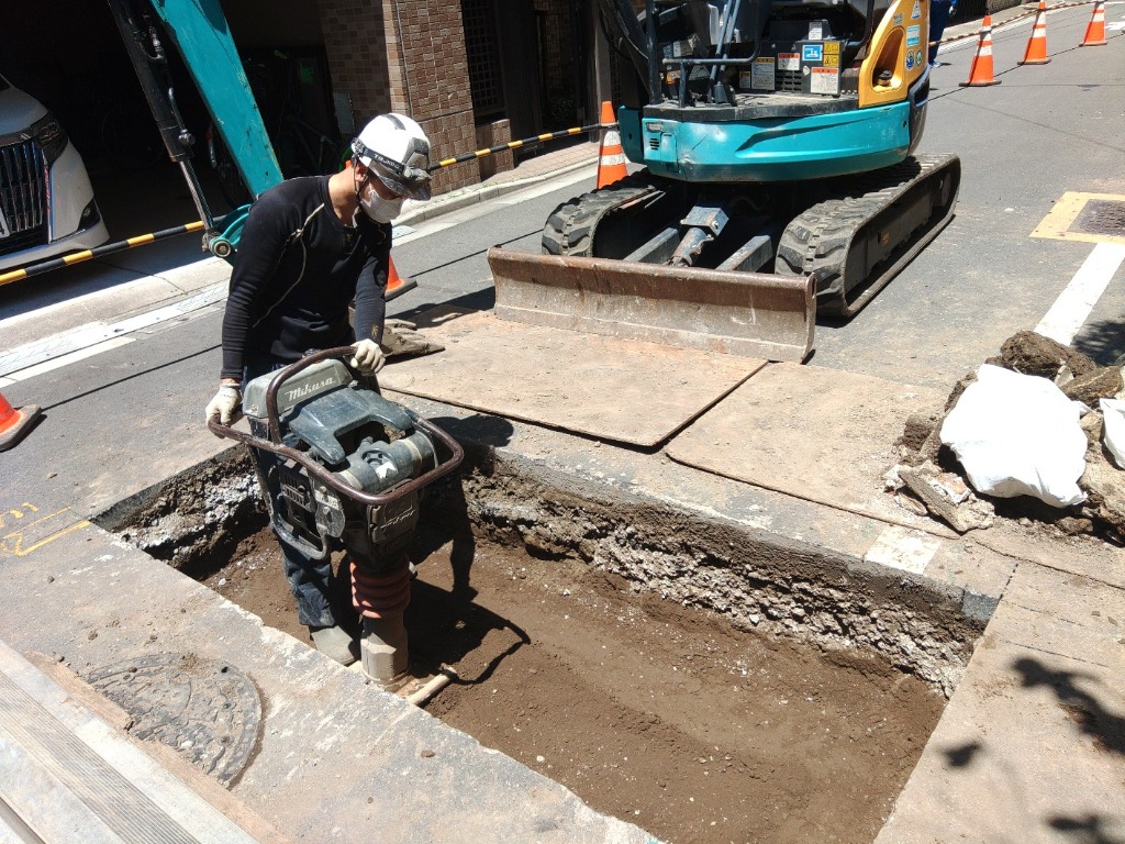 前回の作業4では、埋め戻し工でしたが今回は舗装工(仮復旧)についてお話致します。