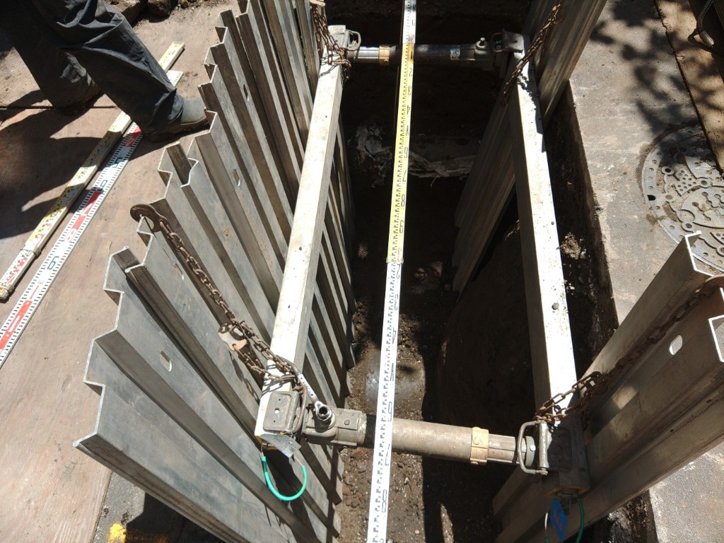 写真は周辺の地下埋設物を人力、重機などで確認した時の状況です。